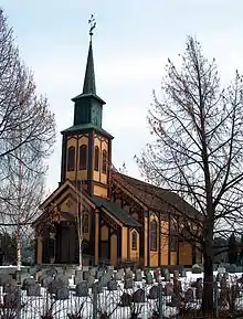 In 1858, church architect Christian Heinrich Grosch was hired to draw plans for the church. the inauguration took place on 10 December 1862. The church received a new chapel, which was dedicated in 1894. The church was restored shortly after 1950 and stood ready for the reopening in 1952.[3][4][5]