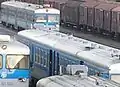 Diesel multiple unit is particularly suitable for exploitation on railway lines with high passenger frequency, on shorter commuter traffic distances, as well as for greater distances on non-electrified lines. It consists of two motor cars, each being equipped with a driver's cab and the possibility of control depending on the running direction. From one driver's cab it is possible to control three coupled sets of two-part DMU's. A two-part set can carry a total number of 288 passengers, out of which number there are 144 passenger seats. Maximum speed of DMU is 120 km/h. The auto-stop device manufactured by RIZ (Zagreb Radio Industry) has now also been built in. From 1994 onwards, the original JŽ painting scheme of the units began to disappear, as the units started receiving new HŽ exterior colour scheme[1]