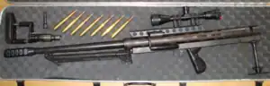 Hagelberg FH 50 is a Danish .50 BMG, single shot bolt-action bullpup precision rifle manufactured by Hagelberg Arms. The rifle is designed for both target shooting and law enforcement use, and comes in two lengths, variant L (Long) and variant K (Short). The rifle can also come with a sound suppressor and short range back-up sights.