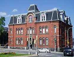 It is a three-storey, red brick building built in the Second Empire style. [1] It was designed by Henry Busch, a proponent of the style, and prominent Halifax architect. Andrew Cobb designed an extension in 1917.[2]