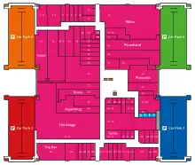 The centre has four multi-storey car parks containing 2,200 spaces. Car parking is free and each car park features disabled and infant & parent spots close to the entrances on the shopping level.