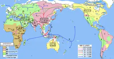 - 1 2 3 Karafet TM, Mendez FL, Sudoyo H, Lansing JS, Hammer MF (Mar 2015). "Improved phylogenetic resolution and rapid diversification of Y-chromosome haplogroup K-M526 in Southeast Asia". European Journal of Human Genetics. 23 (3): 369–73. doi:10.1038/ejhg.2014.106. PMC 4326703. PMID 24896152.