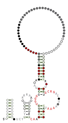 ![]() Consensus secondary structure and sequence conservation of Hatchet ribozyme | |