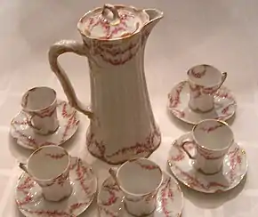 Porcelain hot chocolate set by Théodore Haviland, Limoges, circa 1895–1905.