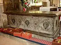 He died in 1542 and was buried in Skipton church, where his monument survives.[4]