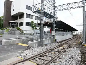 Higashi Nagoyakō Station is served by the Meitetsu Chikkō Line, and is a terminal station for the line, located 1.5 km from the opposing terminus of the line at Ōe Station.[1]