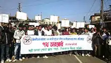 - ↑ The Bodo people are recognized as a plains tribe under the Sixth Schedule. The All-Bodo Students Union (ABSU) signed a Memorandum of Settlement with the Assam State Government in 1993, resulting in formation of the Bodoland Autonomous Council.[42] Its members did not all support the agreement. Some disarmed as agreed, but others formed the breakaway Bodo Liberation Tigers.[31] The jurisdiction of the Bodo Autonomous Council was to be based on ethnicity, but it proved difficult to determine which ethnic groups lived in each area, and the Bodos used force to drive out other ethnic groups from villages they wanted.[33] An agreement was signed in 2003 with the Bodo Liberation Tigers, but this did not include the stronger National Democratic Front of Bodoland (NDFB).[43]