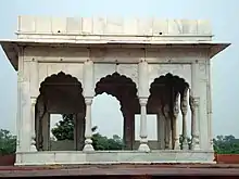 Located to the north end was the Moti Mahal, which was an identical structure built at the same time for the northern axis. It was probably destroyed during or after the Indian Rebellion of 1857.[1] In between these two pavilions was a pool or another structure.