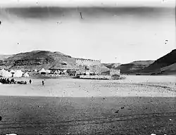 During the second half of the nineteenth century (after 1850s), steamships began to be used in the pilgrimage journey to Mecca, and the number of pilgrims traveling on sea route increased.[27] With the opening of Suez Canal in 1869, the travel time for pilgrimage was shortened.[28] Initially, the British ship companies had a monopoly in these steamship business and they offered little facilities to the pilgrims. In 1886, the then government of India adopted some regulations to improve the pilgrimage journey from India to Hejaz.[29] During the early twentieth century, the Ottoman Sultan Abdul Hamid II constructed the Hejaz Railway between Damascus and Medina which further facilitated the pilgrimage journey: the pilgrims traveled in relative ease and reached Hejaz in only four days.[30] Starting from Damascus in September 1900, the railway reached Medina in September 1908 having a span of 1,300 kilometers (810 mi).[31][32] The railroad was damaged during the First World War by an Arab Revolt force led by British officer T. E. Lawrence.[33][30] Plague used to break out almost every year until 1918.[34]