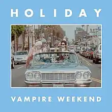 "Holiday" is a song by American indie rock band Vampire Weekend. It was released as the third single from their album Contra. The video premiered on MTV.com on May 27, 2010.[2] The song was featured in Christmas-themed television advertisements for Tommy Hilfiger and Honda[3] during the 2010 holiday season. The single's B-side, "Ottoman", originally appeared on the soundtrack for the 2008 romantic comedy film Nick and Norah's Infinite Playlist.