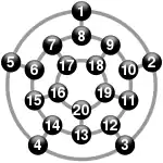 Hunt the Wumpus is a text-based adventure game set in a series of caves connected by tunnels. In one of the twenty caves is a "Wumpus", which the player is attempting to kill. Additionally, two of the caves contain bottomless pits, while two others contain "super bats" which will pick up the player and move them to a random cave. The game is turn-based; each cave is given a number by the game, and each turn begins with the player being told which cave they are in and which caves are connected to it by tunnels. The player then elects to either move to one of those connected caves or shoot one of their five "crooked arrows", named for their ability to change direction while in flight. Each cave is connected to three others, and the system as a whole is equivalent to a dodecahedron.[1]