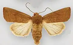 Rubra is taken from the Latin for red and refers to the reddish color of the forewings and body of the moth.