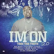 "I'm On" is a song by American rapper Trae tha Truth featuring fellow American rappers Wiz Khalifa, Lupe Fiasco, Big Boi, & Wale and American singer Poo Bear, also known as MDMA. The song was released as a digital download on December 6, 2011. "I'm On" originally appeared on Trae's album Street King, only featuring Lupe Fiasco, Big Boi, Wale and MDMA. The song was later released as a single adding Wiz Khalifa on December 6, 2011. On February 3, 2012, a remix entitled "I'm On 2.0" was released, replacing the featured artists with British singer Mark Morrison and American rappers Big K.R.I.T., Jadakiss, J. Cole, Kendrick Lamar, B.o.B, Tyga, Gudda Gudda, and Bun B.