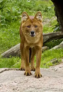 | A captive Ussuri dhole at Kolmårdens djurpark, Sweden. | |