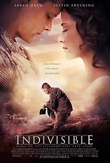 Indivisible is a 2018 American Christian war drama film directed by David G. Evans, who co-wrote the screenplay with Cheryl McKay Price and Peter White. Starring Sarah Drew, Justin Bruening, Tia Mowry and Eric Close, the film is based on the true story of Darren Turner, a United States Army chaplain who struggles to balance his faith and the Iraq War. It was released in the United States on October 26, 2018 by Pure Flix, and received mixed-to-positive reviews from critics.