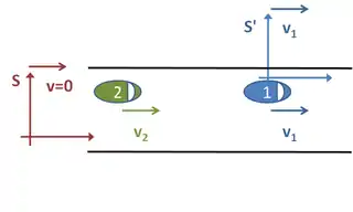 - ↑ However, in the Newtonian system the Galilean transformation connects these frames and in the special theory of relativity the Lorentz transformation connects them. The two transformations agree for speeds of translation much less than the speed of light.