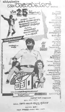 Inspector Vikram is a 1989 Indian Kannada-language comedy thriller film directed and filmed by Dinesh Baboo, written by Chi. Udaya Shankar and produced by Raghavendra Rajkumar under the banner of Nikhileshwari Cine Combines.The film stars Shivarajkumar in the title role with Kavya, Chi Guru Dutt, Aparna and K. S. Ashwath in other supporting roles. It revolves around an undisciplined, but intelligent police inspector, Vikram. It is regarded as the first Kannada film of the comedy thriller genre.[1]