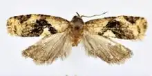 The wingspan is 18–18.5 mm for males. The head is yellowish brown. The antenna and labial palpus are ochreous brown, with scattered yellowish-brown scales. The thorax and tegula are dark grayish brown, sparsely mixed with yellowish brown. The forewings are yellowish brown tinged with ochreous scales. The hindwing and cilia are grayish brown. The legs are dark yellow, mottled brownish black on the ventral side of the foreleg and on the outer side of the mid- and hindlegs. The abdomen is grayish brown.