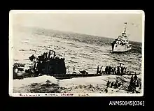 On 21 September 1940 Gondar, under command of captain Francesco Brunetti, sailed from La Spezia to raid the naval base of Alexandria, after the first attempt by Iride had failed. In the evening of September 23, 1940 Gondar arrived in Messina, where she embarked on an SLC unit of six officers, one NCO and 3 sailors.[4] On 25 September 1940 she secretly left for Alexandria. On 29 September Gondar was ordered to head to Tobruk, as the British naval force had sortied from Alexandria. While on her way to Tobruk, at 20:30 on the same day, Gondar spotted an enemy ship, about 1,500 meters away.[3][4] The submarine tried to disengage by diving to 80 meters, however, she was almost immediately detected by ASDIC of destroyer HMAS Stuart who immediately attacked the submarine with depth charges.[4] In two hours, at 22:30 two more ships joined the hunt, an armed trawler Sindonis, and HMS Diamond, with additional units coming to help as the hunt went on, including Sunderland flying boats. The ongoing depth charge attacks caused serious damage to the submarine and especially to the SLC units which were beginning to flood. At 8:30 on September 30, 1940, Gondar had to surface, due to sustained damage and almost completely exhausted reserves of oxygen. Upon surfacing, the crew scuttled the boat with explosive charges. Except for electrician Luigi Longobardi, who was killed by one of the bombs dropped by a Sunderland flying boat, the entire crew was rescued and imprisoned by the British.[3][4]