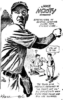 Jake T. Mooty[lower-alpha 1] (April 13, 1912 – April 20, 1970) was an American Major League Baseball pitcher with the Cincinnati Reds, Chicago Cubs and the Detroit Tigers between 1936 and 1944. He batted and threw right-handed. Mooty attended Texas A&M University from 1933 to 1935.[2]