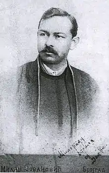 Janko Veselinović was born in Crnobarski Salaši on 1 May 1862 in Eastern Orthodox priestly family.[1] He completed elementary school in Šabac in 1878 and enrolled into teacher's college in Belgrade from which he dropped out.[1] Je worked as a teacher between 1880 and 1882 as well as between 1886 and 1889.[1] From 1893 he worked as an assistant for the Srpske novine newspaper editor.[1] As an enemy of the regime he lost ohis job in 1899-1900 and he was arrested on three separate occasions in 1888, 1899 and 1903).[1] He died on 19 June 1905.[1]