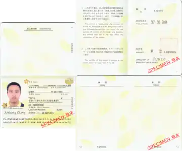 The Re-entry Permit is a passport-like booklet containing 28 pages, including instruction pages, personal information page, and visa pages. The current version's data page is laminated in plastic to prevent tampering.