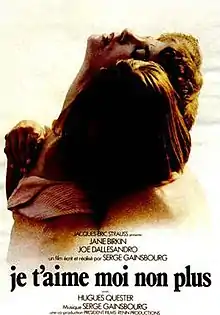 Je t'aime moi non plus (English title: I Love You, I Don't) is a 1976 feature film written, directed, and scored by Serge Gainsbourg, starring Jane Birkin, Hugues Quester and Joe Dallesandro, and featuring a cameo by Gérard Depardieu.