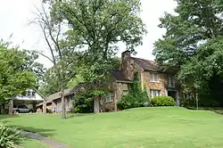 The Jeffries House is a historic house at 415 Skyline Drive in North Little Rock, Arkansas. It is a 2+1⁄2-story wood-frame structure, finished in a fieldstone veneer, and is three bays wide, with a side-gable roof, end chimneys, and symmetrical single-story wings at the sides. The house is distinctive as a fine example of Colonial Revival architecture, rendered in the unusual veneered stone finish. Built in 1931 by the Justin Matthews Company, it was the last house Matthews built in the Edgemont subdivision before the Great Depression brought the development to an end.[2]