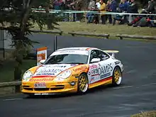 Recently, Richards has driven in the Targa Tasmania as well as numerous other tarmac rallies in the Australian Targa Championship and other tarmac rallies, driving for Porsche. Partnering Richards as a navigator has been motor racing journalist and commentator Barry Oliver. The pairing of Richards and Oliver (affectionately known as Team Grandpa in later years) have together won the Targa Tasmania a record 8 times. Richards and Oliver made their debut in Targa in 1993 in a Porsche 968 CS.[25] His final victory saw him become only the fourth winner of the event in a two-wheel-drive car, and is the last person to do so, holding off more fancied four-wheel-drive rivals over a wet Day 5 to win his last Targa Tasmania title.