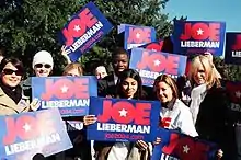 The 2004 presidential campaign of Joe Lieberman, the long-time United States Senator from Connecticut and the vice-presidential nominee under Al Gore in the previous election, began on January 13, 2003, when he announced his intention to seek the Democratic nomination as a candidate in the 2004 presidential election. Describing his Presidential hopes, Lieberman opined that his historically hawkish stance would appeal to voters. Prior to his defeat in New Hampshire, Lieberman famously declared his campaign was picking up "Joementum".[1] On February 3, 2004, Lieberman withdrew his candidacy after failing to win any of the five primaries or two caucuses held that day. He acknowledged to the Hartford Courant that his support for the war in Iraq was a large part of his undoing with voters.[2] Lieberman's former running candidate Al Gore did not support Lieberman's Presidential run, and in December 2003 endorsed Howard Dean's candidacy, saying "This is about all of us and all of us need to get behind the strongest candidate [Dean]."[3]