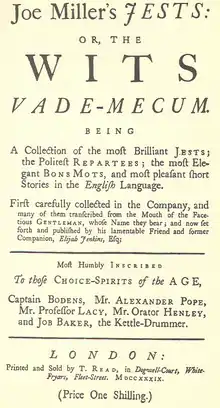 Joe Miller's Jests, or the Wits Vade-Mecum (1739)
