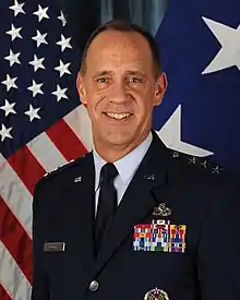 He is a graduate of the Air Command and Staff College and Air War College, holds a master's degree in business management from Webster University and completed senior management courses at The University of Virginia, Harvard University and the University of North Carolina at Chapel Hill. His military awards include the Distinguished Service Medal with Oak Leaf Cluster, Legion of Merit with Oak Leaf Cluster and Meritorious Service Medal with 4 Oak Leaf Clusters.[3][4][5]