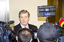 After being elected treasurer, Kennedy drafted a bill to move the work of managing unclaimed property from the Department of Revenue to the state treasurer's office to allow him to continue the work he had started as secretary of revenue under Governor Foster.[15][42] Kennedy led regular events to raise awareness about unclaimed property at malls and other public spaces, returning $400 million to 600,000 Louisianians.[43] He told reporters that the state had returned money to many prominent Louisianians, including Foster, Archie Manning, and John Goodman.[44] Under Kennedy's leadership, the treasury uncovered $45 million in unclaimed death benefits alone.[45]