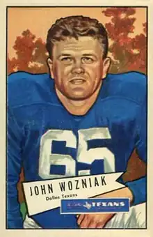 John Edward Wozniak (August 2, 1921 โ August 26, 1982) was an American football offensive guard who played nine seasons in the All-America Football Conference (AAFC), the National Football League (NFL) and the Canadian Football League (CFL). He originally was drafted by the Pittsburgh Steelers in the 1948 NFL Draft and the Brooklyn Dodgers in the 1948 AAFC Draft.