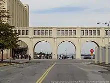 Arkham State Hospital is based on Arkham Asylum.[36] Warner Bros. Korea explained that it is a more realistic name in the real world.[111] The exterior of Arkham State hospital was filmed at Brooklyn Army Terminal,[112] while the interior was pictured in Metropolitan Hospital Center of Harlem.[113] Throughout the film, two walls are shown inside Arkham State Hospital; one is clearly white in the first and last scenes, the other is dirty yellow in the scene in which Arthur runs with a medical report. This difference was intended to make the audience confused and to question the possibility that Arthur had been in hospital the entire time.[36][111]