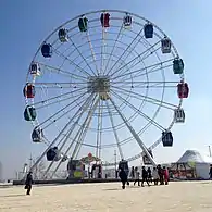 Located in the park Ferris wheel's height is 30 meters. It is 1,136 meters above sea level. There are 20 closed highly comfortable and safe cabins, 6 passengers for each cabin. There is great view on Almaty from cabins.[7]
