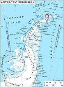 Location of Astrolabe Island in the Antarctic Peninsula region