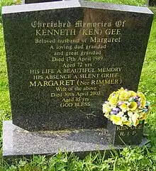 In recognition of Gee, an amateur rugby competition in Wigan called "Ken Gee Cup" was formed. Gee died 17 April 1989 (aged 72) and was buried at St Matthew's Church at Highfield, Wigan.