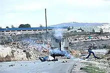 Mustafa Tamimi, a 28-year-old Palestinian taxi driver,[3] was killed when he was hit by a tear gas canister by Israeli forces fired from close range and striking him directly in the face on 9 December 2011 during a weekly protest[4] in Nabi Salih, West Bank.[1][5][6] The tear gas canister that struck him was fired from the rear door of a military vehicle at which he was throwing stones while running after it.[7] The incident raised questions about Israeli military behavior when engaging with the demonstrators.[8]