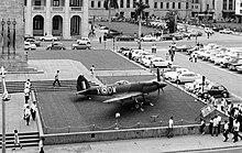 Image of the exact Spitfire aircraft that was located on KGV grounds during the 1950s, pictured here in the Cenotaph in Central in 1965