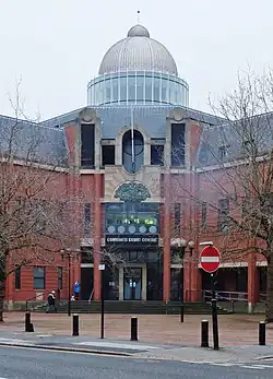 The new building was designed by the Building Design Partnership, built in red brick with stone dressings at a cost of £11.3 million,[6] and was officially opened by the Lord Chancellor, Lord Mackay, on 18 October 1991.[7][8] The design involved an asymmetrical main frontage facing southwest onto a small courtyard just off Lowgate. The central section, of three bays, featured a short flight of steps leading up to a glass doorway with a stone architrave. There was an oriel window surmounted by a stone panel with a carved Royal coat of arms on the first floor and a flagpole framed by a round headed structure at attic level. The outer bays, which were flanked by pilasters, featured lancet windows on the first floor and round headed structures containing louvers at attic level. The wings were fenestrated by casement windows on both floors and the left hand wing featured a tower with a dome at the corner with Alfred Gelder Street. At roof level, there was also a large central dome. Internally, the building was laid out to accommodate 14 courtrooms.[9]