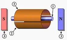 1) Cathode, 2) Anodes, 3) Permanent magnets