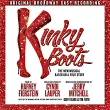 A Broadway original cast album for the musical Kinky Boots was released on May 28, 2013, less than two months after the show opened on Broadway.[1] It was produced by Cyndi Lauper, who wrote the songs, Stephen Oremus, the orchestrator and conductor, and William Wittman.[2] On release it premiered at number one on the Billboard Cast Albums Chart and number fifty-one on the Billboard 200 chart,[3] making it the highest charting Broadway cast recording since The Book of Mormon's album was released two years earlier.[4] Vocalists on the album include Stark Sands, Billy Porter and Annaleigh Ashford, .