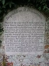 Near the road junction to the west of the church an inscribed stone set into the old rectory wall warns against drunkenness in no uncertain terms.