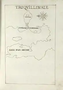 The Yalpana Vaipava Malai and Konesar Kalvettu, as well as a 16th-century Tamil inscription in Trincomalee and Tamil copper-plate inscriptions of the temple relate many details about Kullakottan's founding of Trincomalee and the Vanni.[47] Modern historians and anthropologists agree as historically factual the connection of the Vanniars with the Konesar temple. Dating the reign of the king has proved difficult. The Konesar Kalvettu dates Kullakottan's renovations to specifically between 432 and 440.[53] C. Rasanayagam notes that the Vanniar chiefs who were in control of the temple could not have multiplied so fast within 150 years causing the king Aggrabodhi I of Anuradhapura to take elaborate steps to contain the Vanniars in 593. He argues the Vanniars of the Vannimai were a buffer state between Trincomalee and Mannar from the classical period.[53] Other historians suggest that Kullakottan arrived to the island during the island's reign of The Five Dravidians of Pandyan descent, between 103 and 88 BCE, corroborating the Yalpana Vaipava Malai equation of his grandfather Manu Needhi Chola's identity with that of Ellalan Chola, a historical king who ruled the island from 205 to 161 BCE that shared many character traits with the legendary Manu Needhi. In Geography of Avienus, a poem of Latin geographer and writer Rufius Festus Avienius in 350 CE, the author bases his writing on the island on Orbis descriptio by Alexandrian Greek poet Dionysius Periegetes (117—138 CE), who called the island the "great Island of Coliadis" whose inhabitants worship the multi-towered Cholian temple to Venus on their Cholian rock promontory by the sea. A twelfth-century commentary on Periegetes by Eustathius of Thessalonica also compares the shape of Konesar Malai to a phallus.[45][46] The Portuguese historian De Quieroz cited poetic and inscriptional evidence to date Kullakottan's renovations to 1589 BCE, based on a Tamil poem by Kavi Raja Virothayan he read which was translated into English in 1831 by Simon Cassie Chitty. A major temple of the compound was built to the glory of the God Videmal by King Manica Raja 1300 years before the nativity according to Oud en Nieuw Oost-Indiën written in 1726 by François Valentijn.[54] Some consider the story of Kullakotan to be mythical based on the travails of historical figures such as Gajabahu II, Kalinga Magha or a Chola regent of Sri Lanka.[7][55]