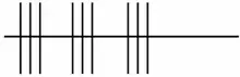 A match consists of at least three games. When beginning a match, the scorer draws the scoring diagram (1st illustration). A team wins a game if all of its lines have been crossed out. By convention the scorer's team is always shown in the lower row. Various factors affect the game score: