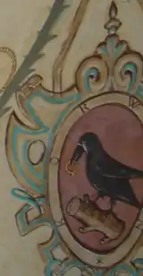 Korwin coat of arms can be found on the tombstone of the Chancellor of Cracow Academy Łukasz Noskowski (also Łukasz of Noskowa; †1532), buried in St. Mary's Basilica, Kraków. Image of a raven also appears on the city seal of Głogów from March 17, 1490. A raven sitting on a branch was the emblem of the Corvinus/Korwin family, which ruled in the Duchy of Głogów in the second half of the 15th century and gave their emblem to the city.
