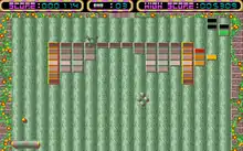 The game also features several different monsters of varying sizes which will attempt to get in the way of the ball. The paddle can easily dispatch a monster by striking it with the paddle, and can additionally down a monster using the ball or a projectile granted from a bonus. Only one type of monster poses a direct threat to the paddle, which has a force field that can destroy the paddle unless it has a shield.