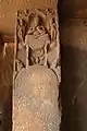 The verandah of Chaitya has several reliefs of the Buddha, carved with symbols of lotus, wheel and Nagas. Later in 5th/6th century CE, the Buddhist branch of the Mahayana took over the caves and added their sculptures.[1] The first cave has ancient writing on its wall. The sixth cave entrance is adorned with elephants.[2]