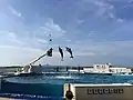 Near the aquarium is the Dolphin Show Stadium, called the Okichan Theater, where viewers can touch the animals and watch the show's performance for free.[37] There is also a dolphin contact facility called Dolphin Lagoon, which houses several species of dolphin.[38][39] The Indo-Pacific bottlenose dolphin named Okichan has been owned since the opening of the Okinawa Ocean Expo Aquarium and has been bred for 45 years as of 2020.[28]